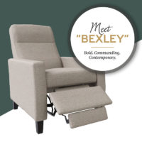 We have created these image assets to help you promote the Bexley recliner to your clients. This page hosts product images on white backgrounds, a room image, and some images specifically designed for sharing on social media.