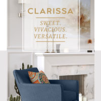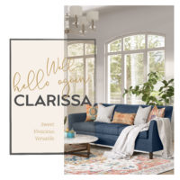 We have created these image assets to help you promote the Clarissa Collection to your clients. This page hosts product images on white backgrounds, a room image, and some images specifically designed for sharing on social media.