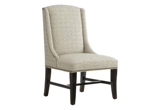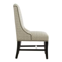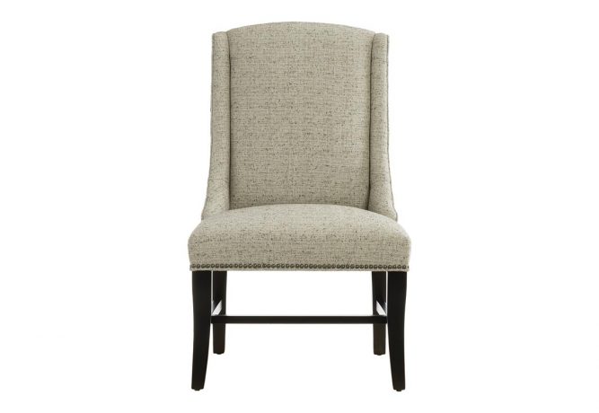 This superbly styled dining chair will keep your guests at the table long after the meal is done and the table has been cleared. Designed for the host or hostess with exquisite taste for the finer things in life, it comes standard with metal nail head trim and plush padding. Choose from our fabric or leather colours and styles, select the harmonizing wood finish for the legs, then sit back and taste the sophistication and refinement. For a side order of elegance, your chair is also a perfect accent for any room.
