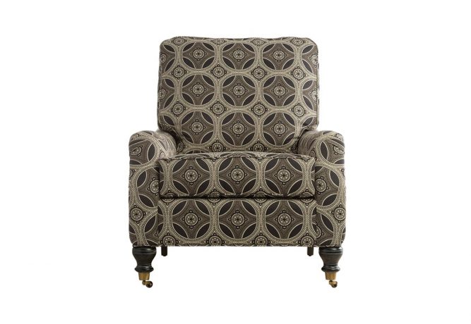 This lounge chair has a lot going for it, so we put wheels on the front! Solid and durable, it can easily be repositioned for a chat or relocated to a cozy spot for some quiet time with a good book or a cup of tea. Adding to the overall design, the curvaceous front legs are trimmed with ferrules and casters. You can explore the hundreds of covering possibilities we offer and choose the perfect fabric, colour, and pattern to make your chair one of a kind.