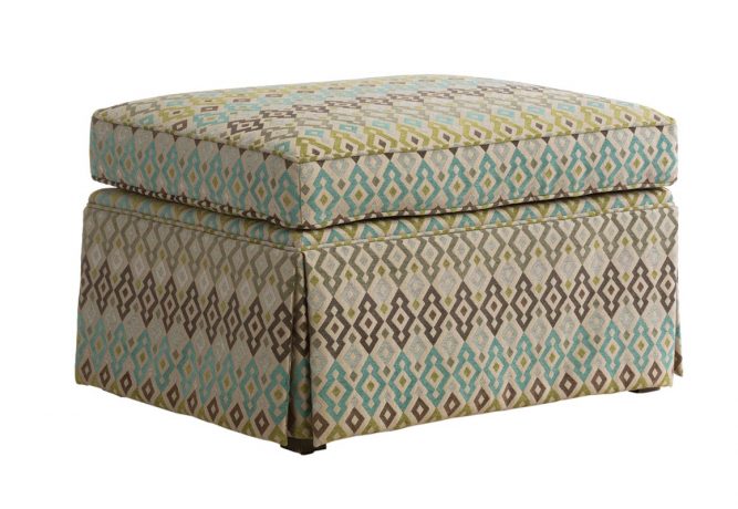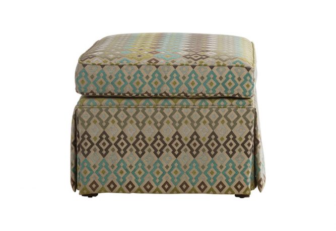 Designed specifically with the 14309 chair in mind, this skirted ottoman could be perfectly paired with any couch or chair. Solid and elegant, it could also be more than just a place to prop your feet at the end of the day. Add a tray and it’s a coffee table. Place it in the foyer and it offers a comfortable spot to sit while you’re getting ready. Just choose your ideal covering from over 300 quality choices and we’ll craft.