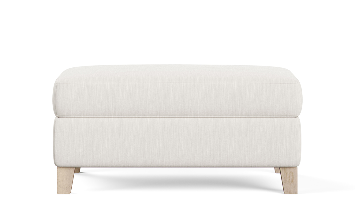 chelsea transitional ottoman in a white fabric with light wood legs