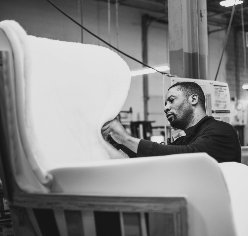 While other manufacturers may charge additional fees for higher-quality add-ons, at Vogel, quality is our standard. We always use the best-quality foam (we never go below a 2.5-pound density), wood frames (never particle board), and finishes. Comfort and quality are paramount in every piece we create, ensuring you and your clients are delighted with the result.