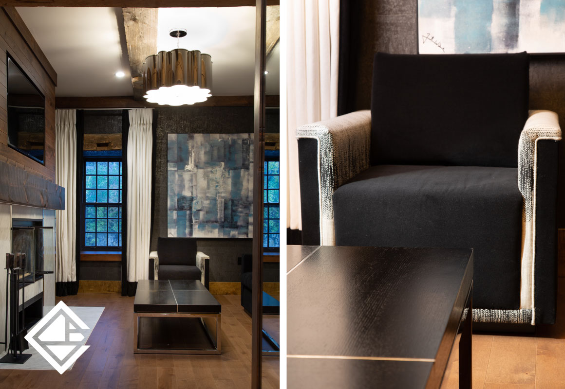 This magnificent project is a designer’s dream come true! Combining the dynamic history of the building with modern and French designs, the furniture went beyond our custom line to exclusive pieces contracted specifically for this luxurious setting. With the ambience of wood-burning stoves in most rooms, comfort and relaxation were at the top of our inspiration list.