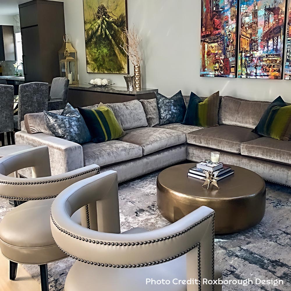 We must say, this room is stunning! A beautiful, luxury design by Roxborough Design. Thank you for sharing these images with us; we can’t wait to see more. Showcased are Vogel’s 11182 Accent Chair, Customized Sectional, and a glimpse of the 11232 chairs at the dining table. Such a luxurious design!